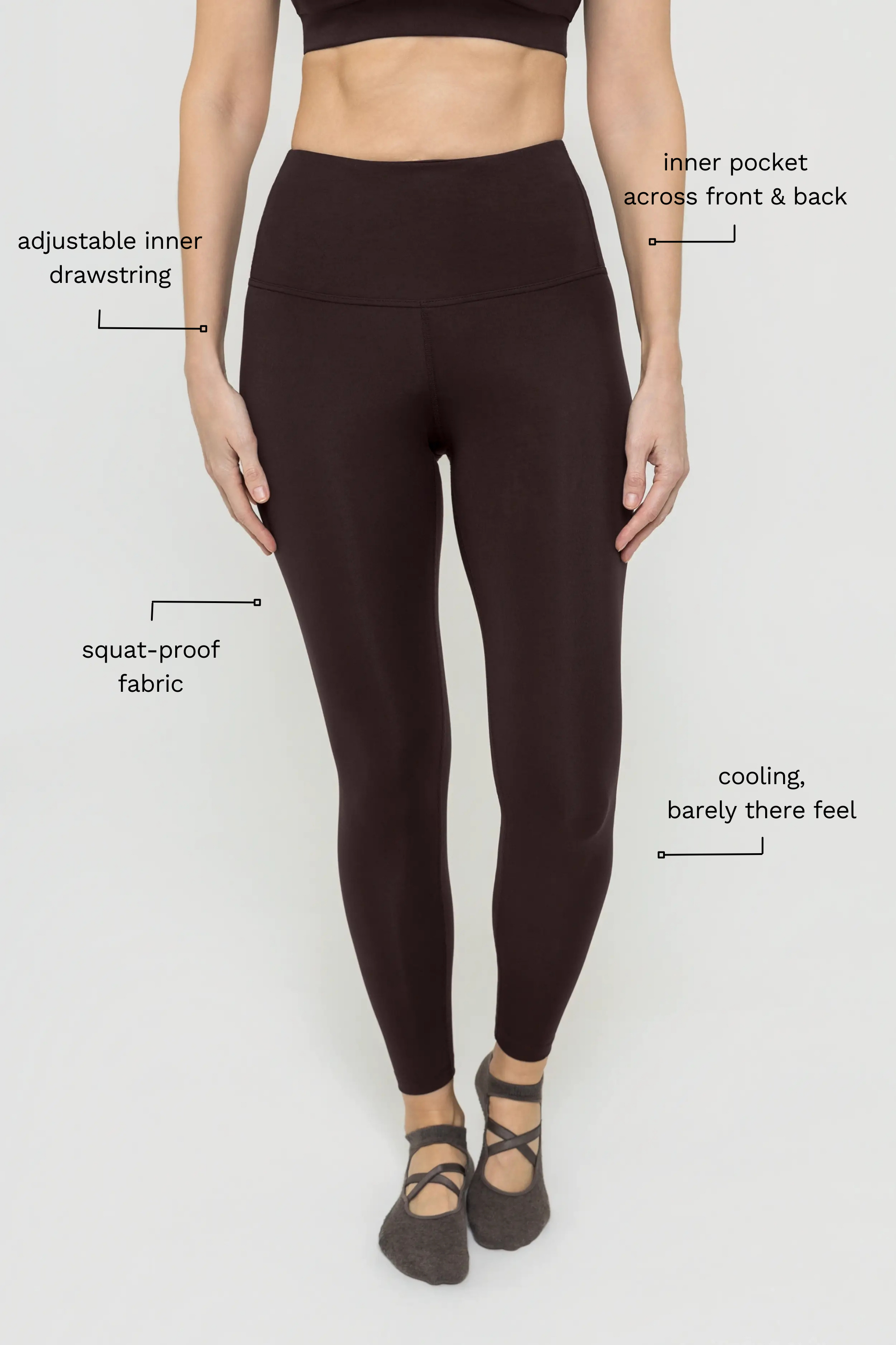 • Adjustable inner drawstring to adjust fit around the waist and to keep your leggings stay in place