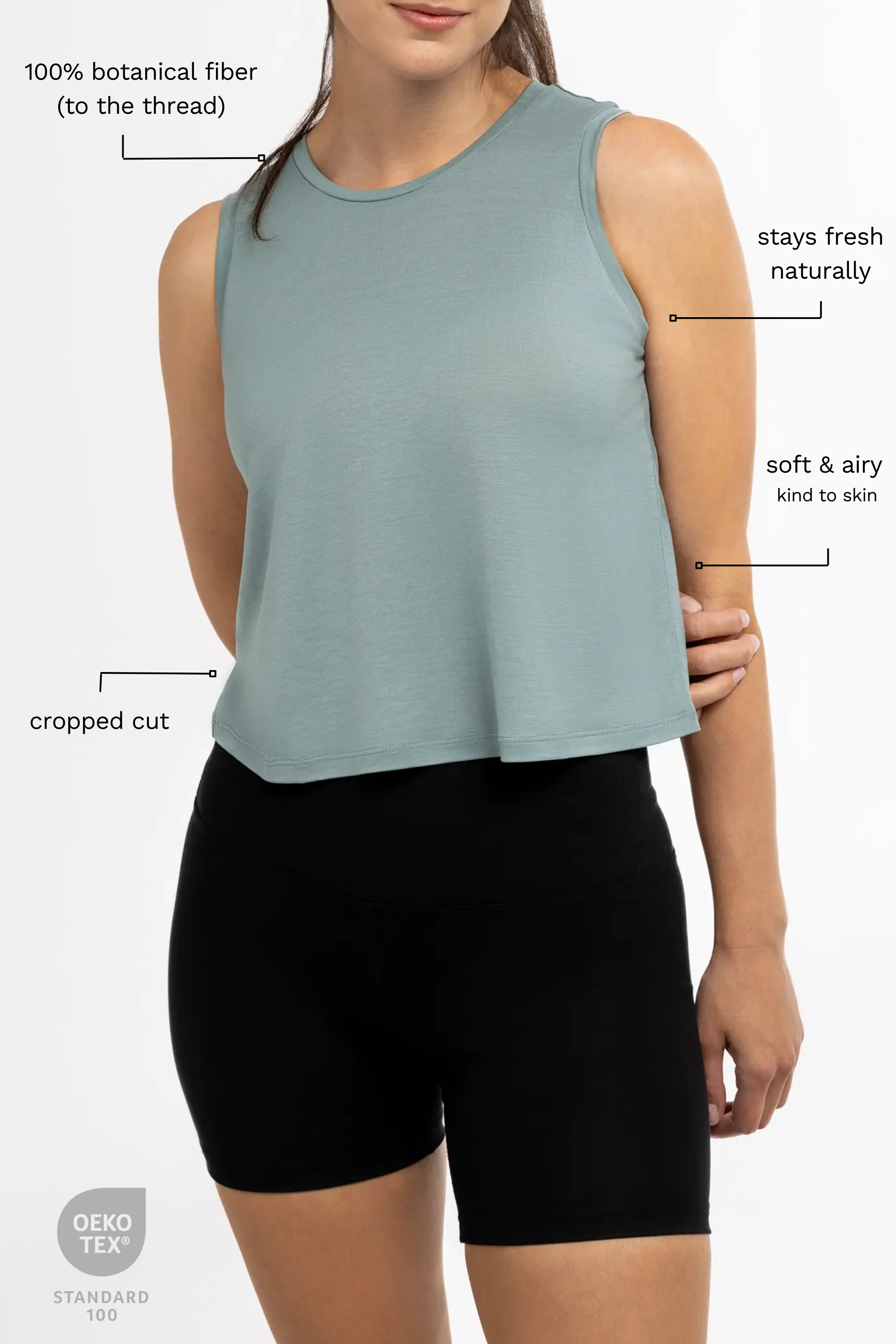Crafted from pure botanical fiber down to the thread, it feels smooth, airy, and naturally cooling against the skin. Silky-soft and breathable, it keeps you comfortable and confident through studio sessions, HIIT, hot yoga, and beyond.