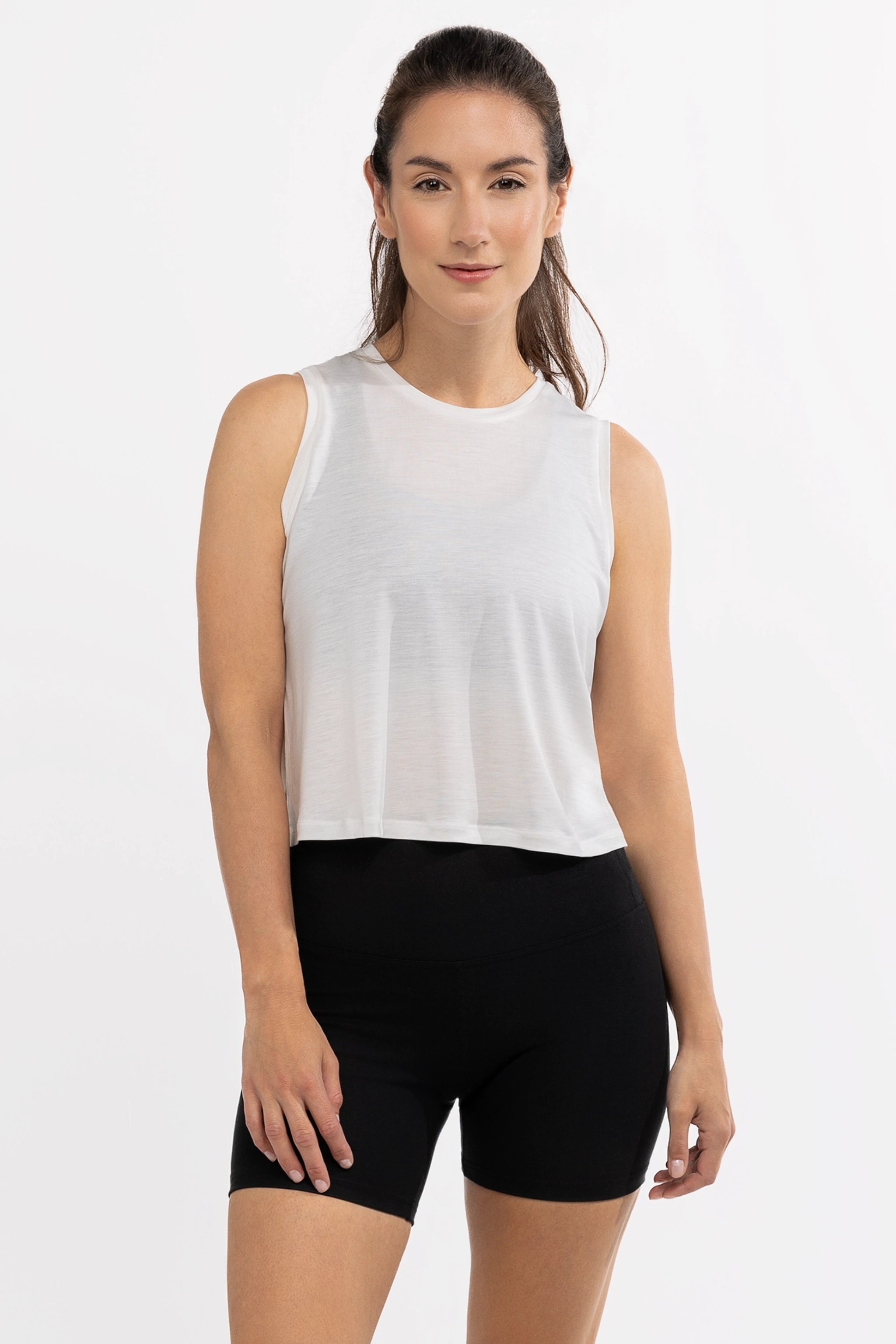 The refined cropped cut and featherlight feel help keep you cool and dry from warm-up to wind-down.