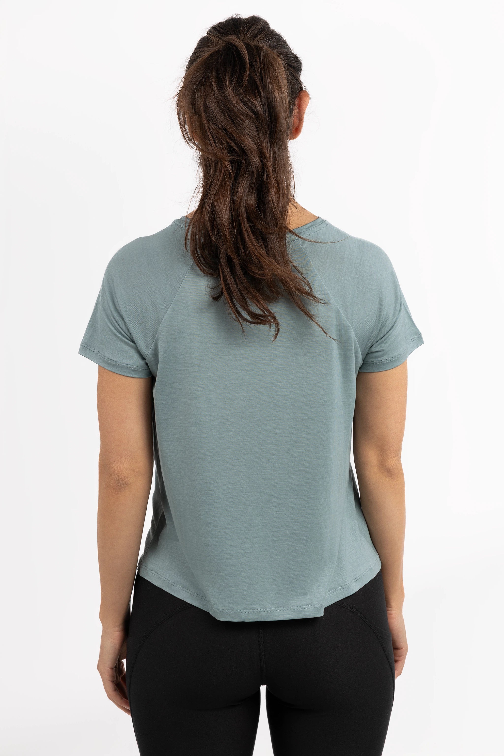 Model is wearing size S in black and eucalyptus green.